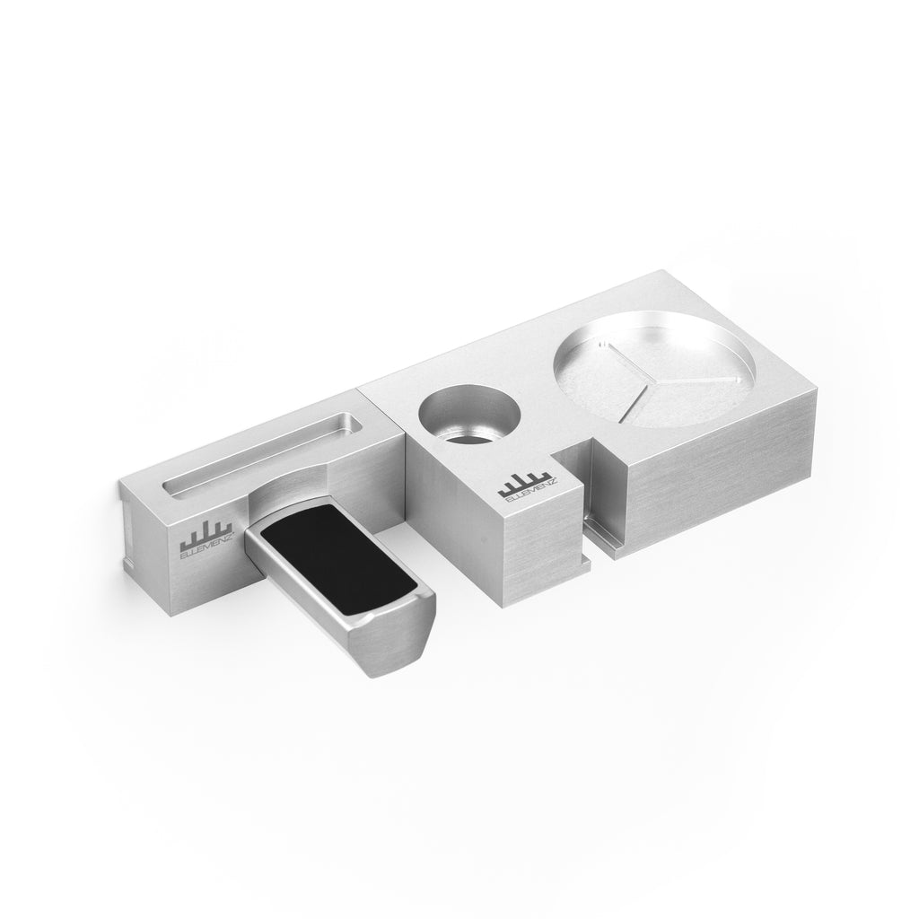 Unser Zahnpflegehalter wird aus einem Stück Aluminium CNC- gefräst und anschließend  per Hand gebürstet und farblich veredelt. So entsteht Qualität made in Germany, die ihre elegante Optik ewig behält.